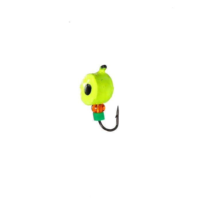 Мормышка Таблетка лайм, чёрный глаз + бисер, вес 0.9 г