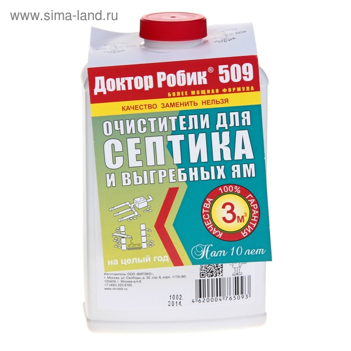 Очиститель для септика и выгребной ямы Доктор Робик 509, 798 мл.