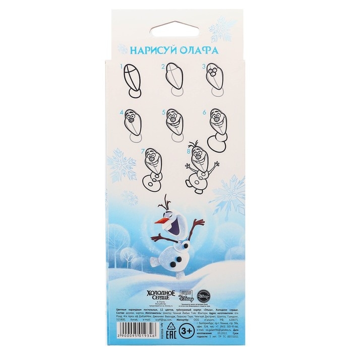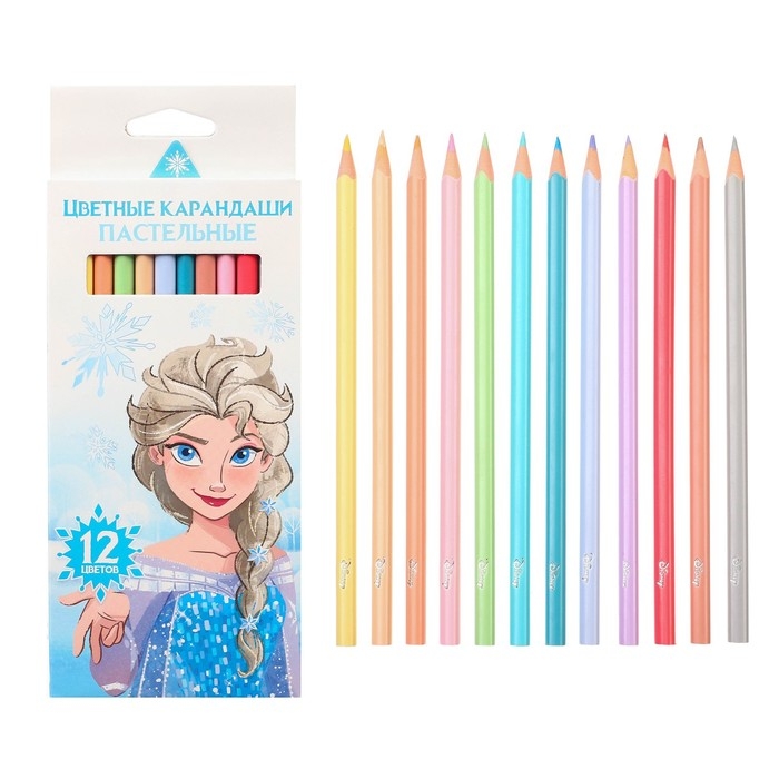 Цветные карандаши пастельные, 12 цветов, трехгранные, Холодное сердце