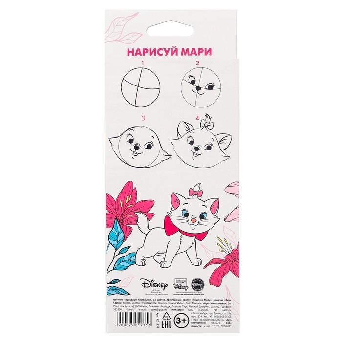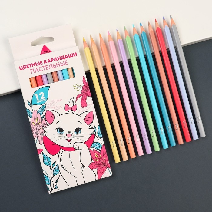 Цветные карандаши пастельные, 12 цветов, трехгранные, Коты Аристократы