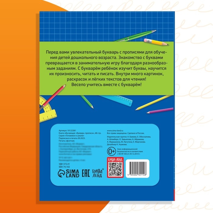 Книга «Букварь – прописи» представляет собой увлекательный букварь с прописями для обучения детей дошкольного возраста. Знакомство с букварём превращается в занимательную игру благодаря разнообразным заданиям. Благодаря книге «Букварь – прописи» ребёнок изучит буквы, научится их произносить, читать и писать. На страницах книги вы найдёте яркие иллюстрации, легкие тесты для чтения, а также раскраски для отдыха от обучения.