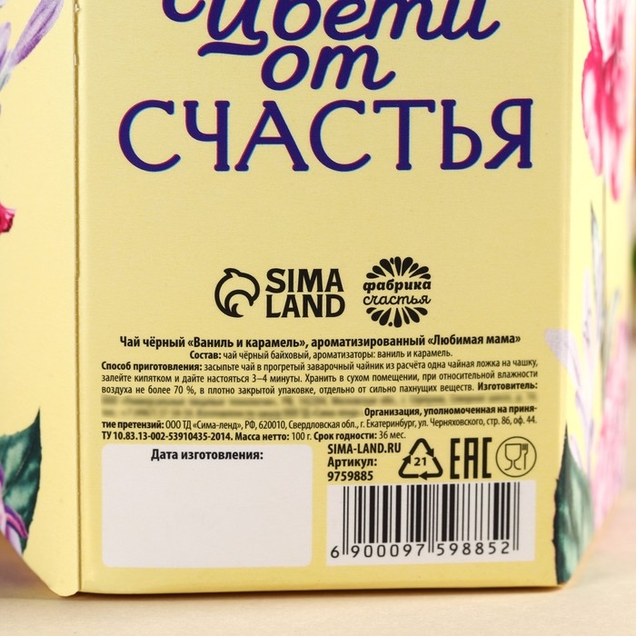Чай в коробке конфете «Любимая мама», вкус: ваниль и карамель, 100 г.