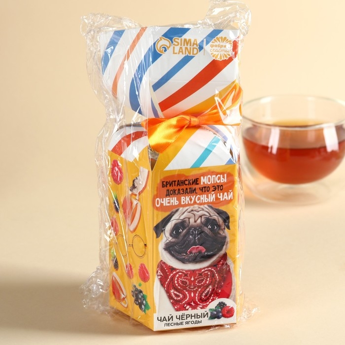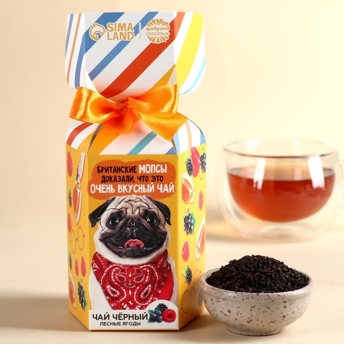 Чай чёрный в коробке конфете «Британские мопсы», вкус: лесные ягоды, 100 г.