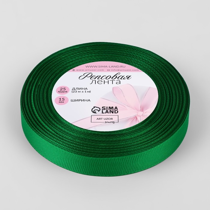 Лента репсовая, 15 мм, 23 ± 1 м, цвет зелёный №19