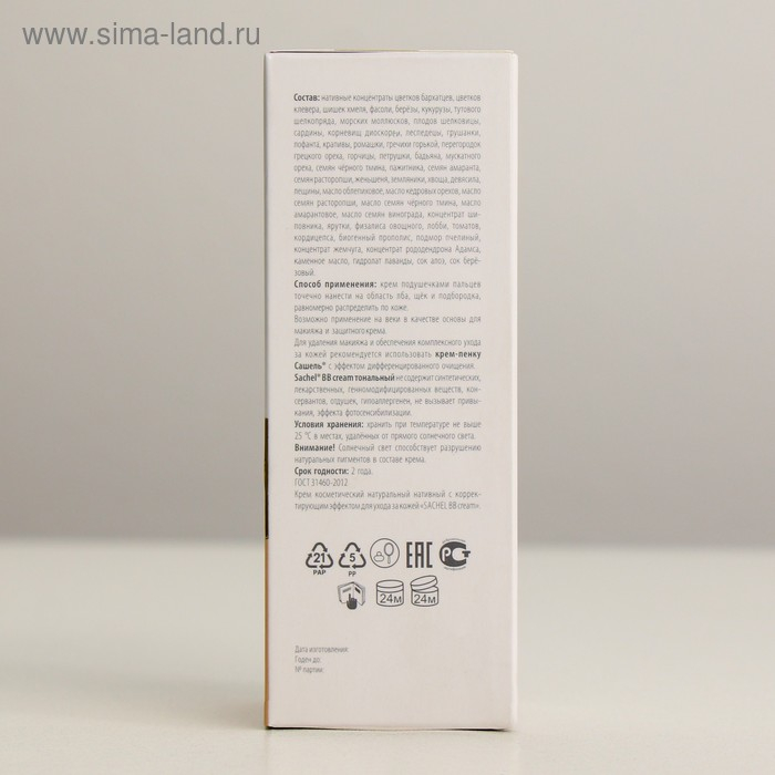 SACHEL® BB cream тональный не содержит синтетических, лекарственных, генномодифицированных веществ, консервантов, отдушек, гипоаллергенен, не вызывает привыкания и фотосенсибилизации.