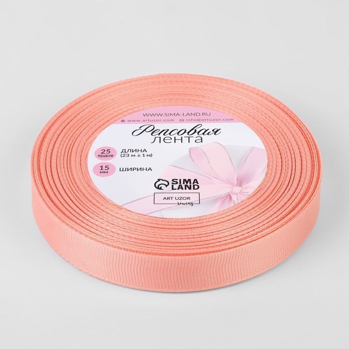 Лента репсовая, 15 мм, 23 ± 1 м, цвет розовый персик №0176