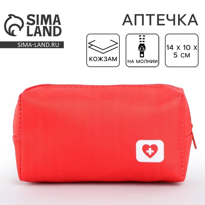Аптечка дорожная из искусственной кожи "Сердечко", 14*10*5 см, красный цвет