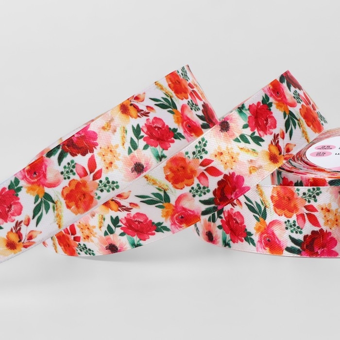 Лента атласная «Весенний букет», 25 мм, 23 ± 1 м, разноцветная