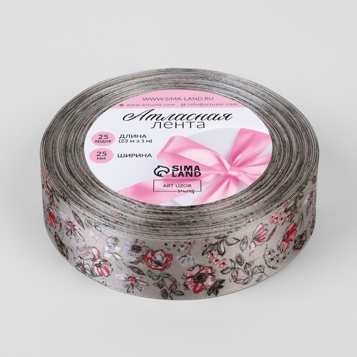 Лента атласная «Холодные цветы», 25 мм × 23 ± 1 м, цвет серый