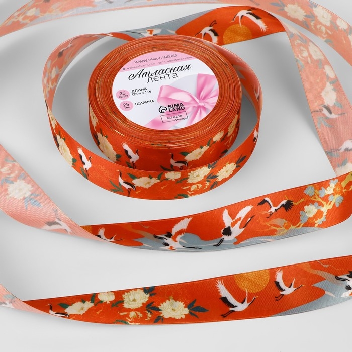 Лента атласная «Япония», 25 мм × 23 ± 1 м, цвет красный