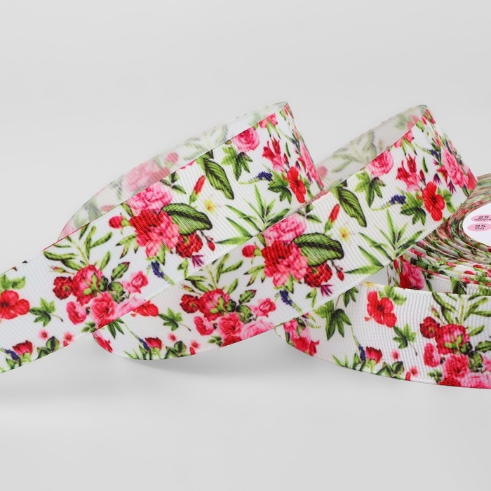Лента репсовая «Тропический букет», 25 мм, 23 ± 1 м, разноцветная