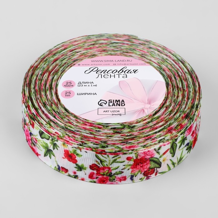 Лента репсовая «Пионы», 25 мм, 18 ± 1 м, разноцветная