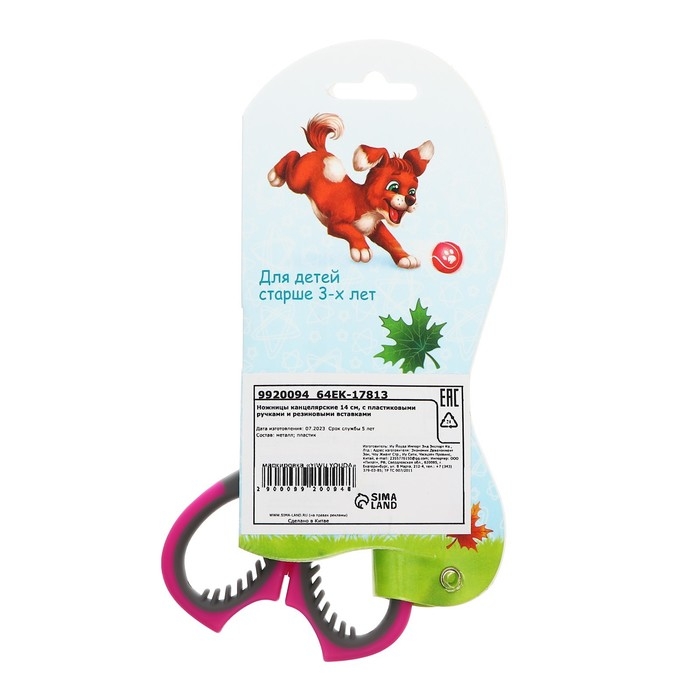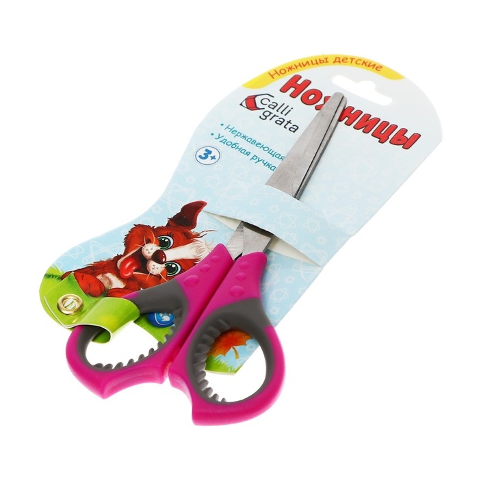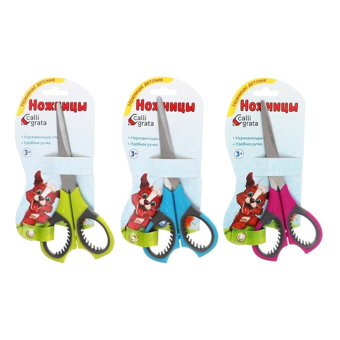 Ножницы канцелярские 14 см Calligrata, пластиковая ручка, резиновые вставки, микс