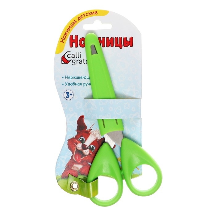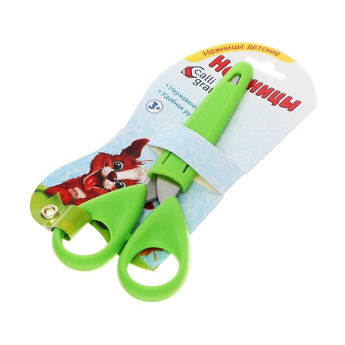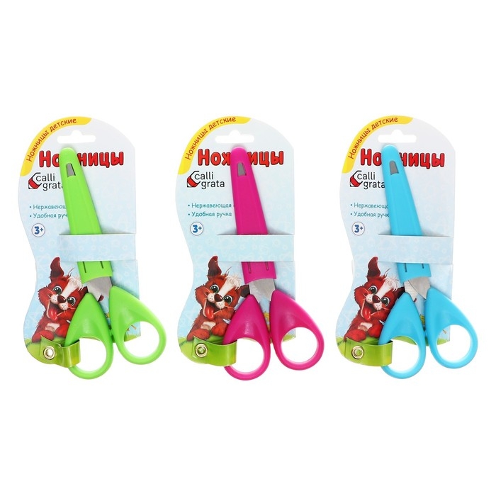 Ножницы канцелярские 13 см в защитном футляре для лезвия Calligrata, пластиковая ручка, микс