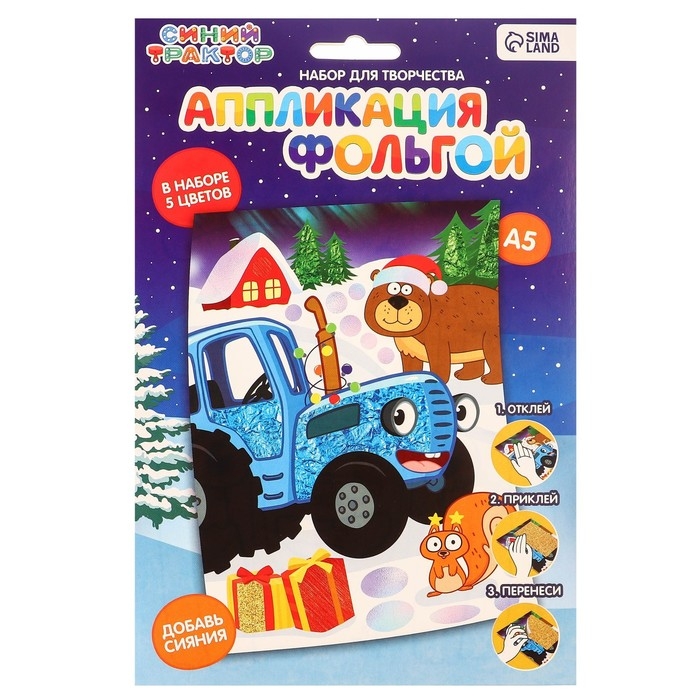 Аппликация фольгой "Новый год" 23х15 см, Синий трактор