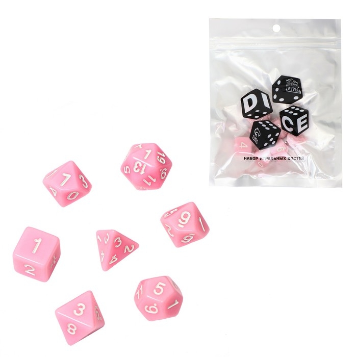 Набор кубиков для D&D (Dungeons and Dragons, ДнД) "Время игры", серия: D&D, 7 шт, розовые