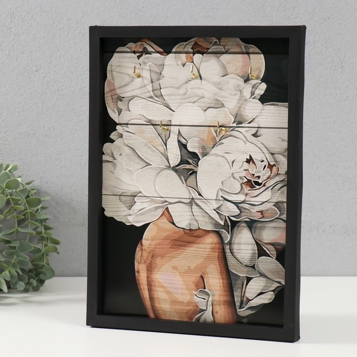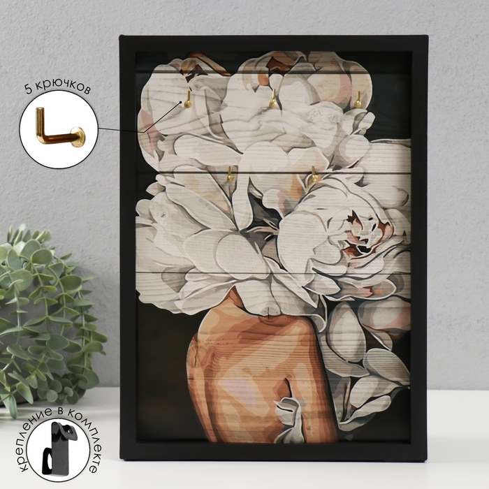 Ключница открытая "Белые пионы" 5 крючков, 23х32 см