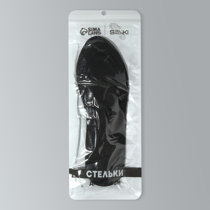 Стельки для обуви, универсальные, влаговпитывающие, р-р RU до 46 (р-р Пр-ля до 46), 29 см, пара, цвет чёрный