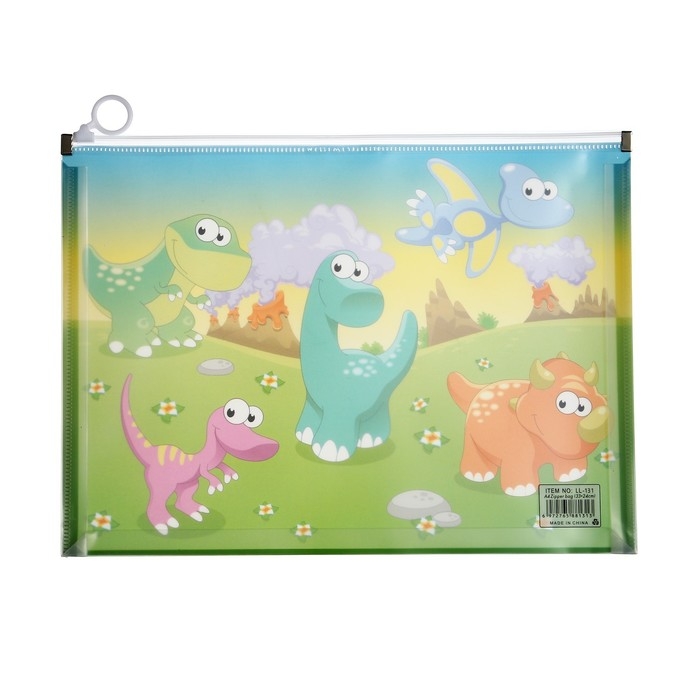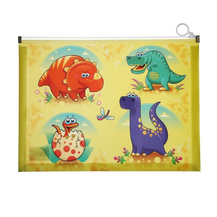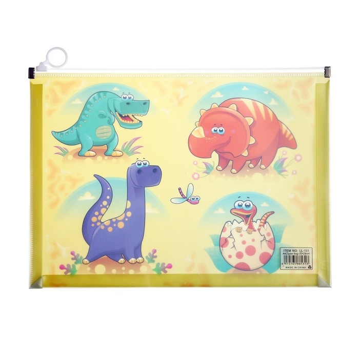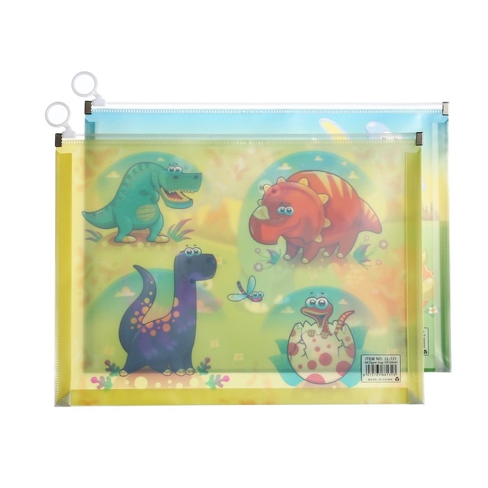 Папка-конверт на молнии формат А4, 180мкр, с рисунком "Драконы", МИКС