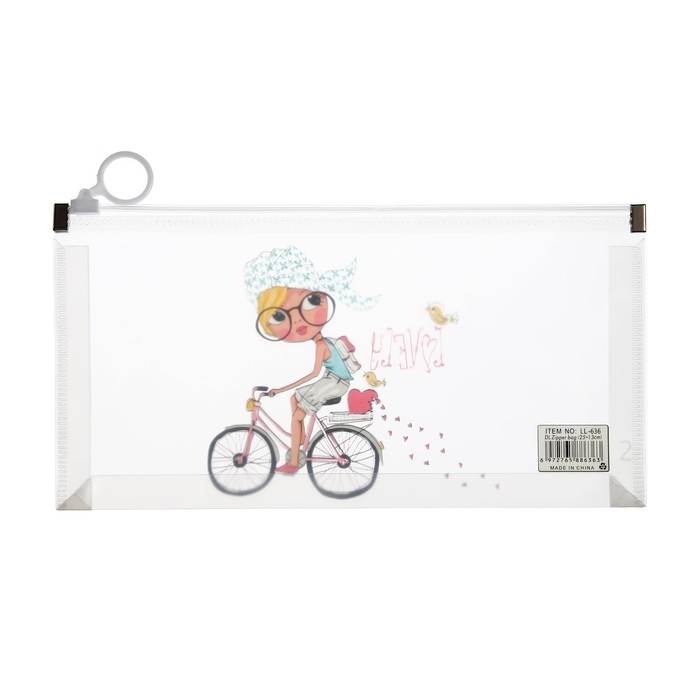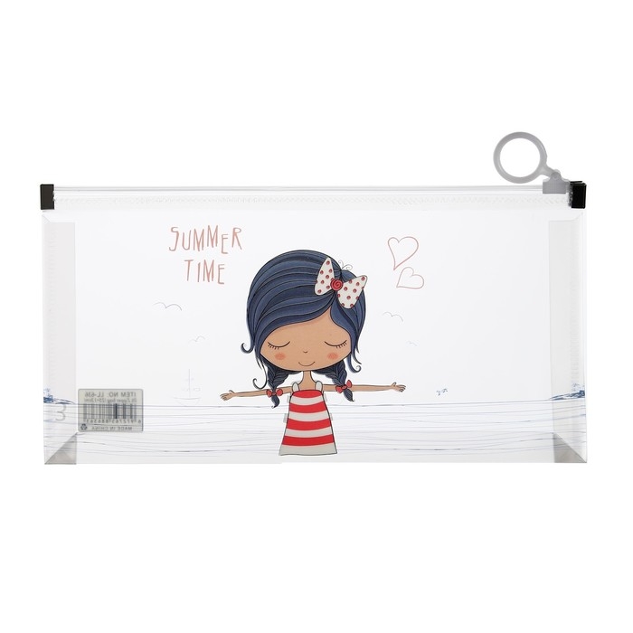 Папка-конверт на молнии формат А6, 180мкр, с рисунком "Маленькая девочка", МИКС