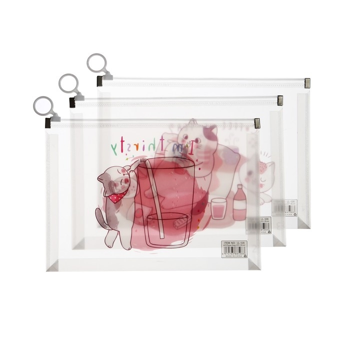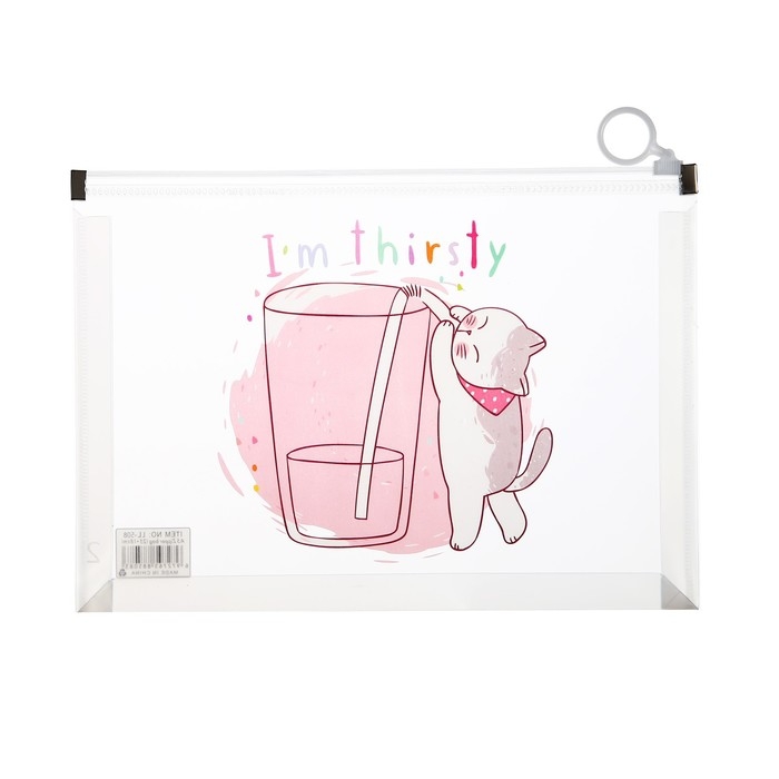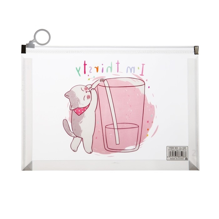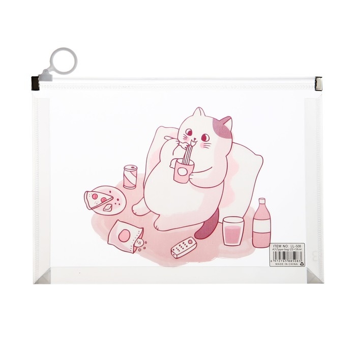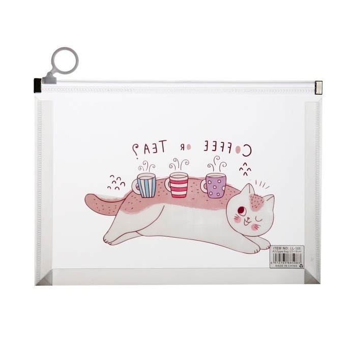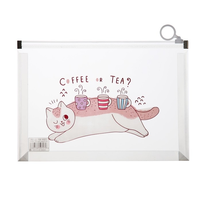 Папка-конверт на молнии формат А5, 180мкр, с рисунком "Кот", МИКС