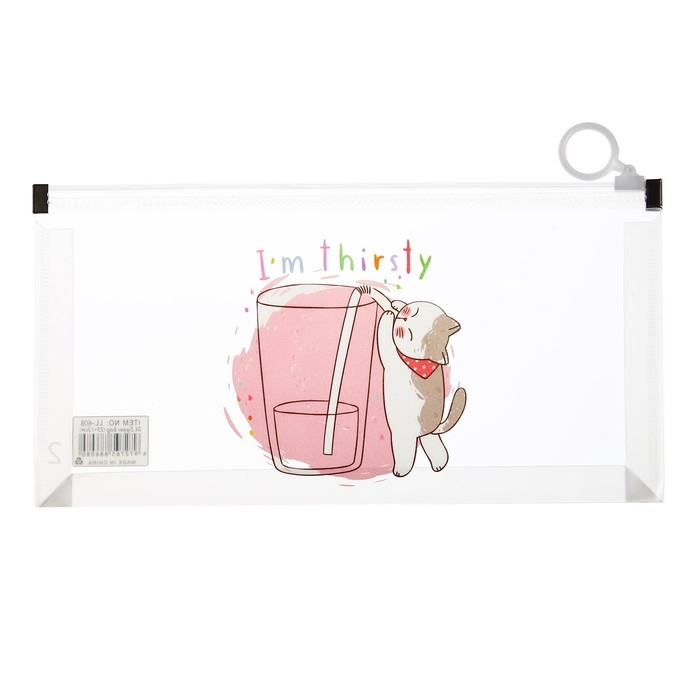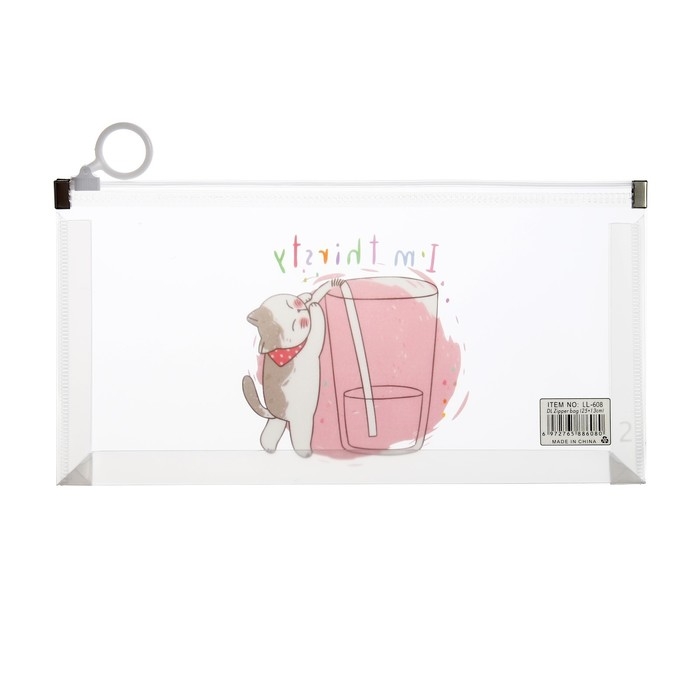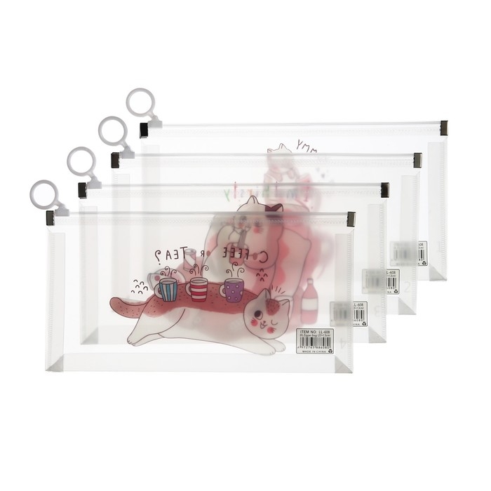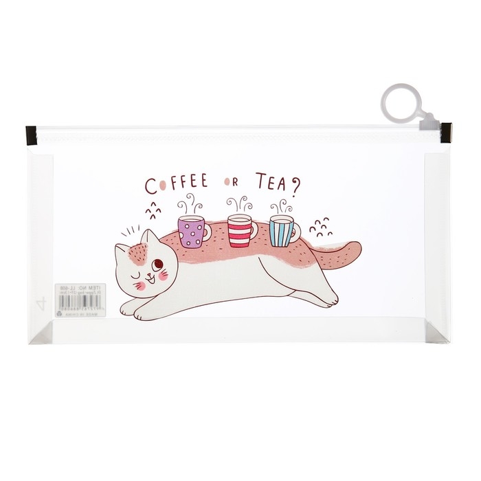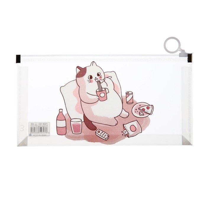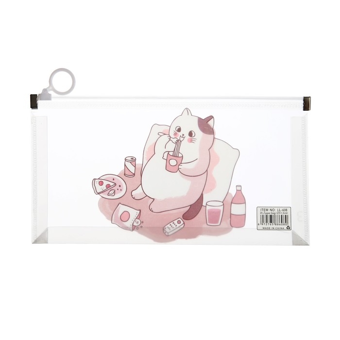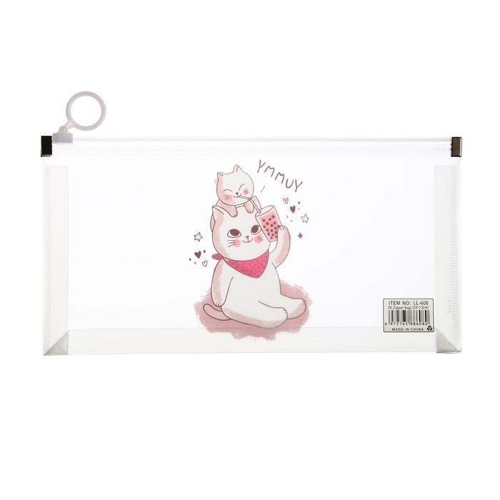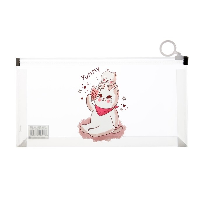 Папка-конверт на молнии формат А6, 180мкр, с рисунком "Кот", МИКС