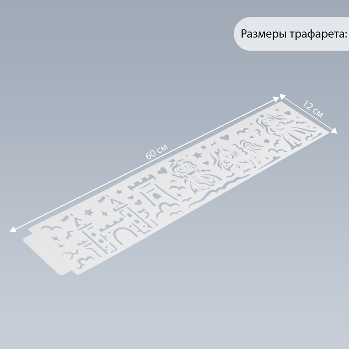 Трафарет бордюрный пластик "Принцессы и замок" 60х12 см