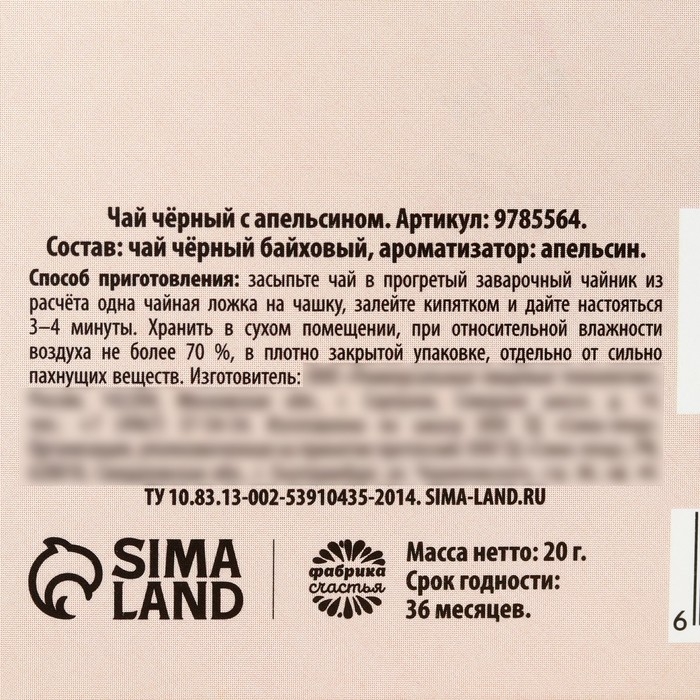Чай чёрный «Тёплых мгновений», вкус: апельсин, 20 г.