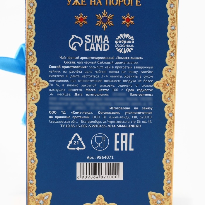 Новый год! Чай чёрный «Зимняя Новогодняя сказка» в коробке-книге, вкус: зимняя вишня, 100 г.