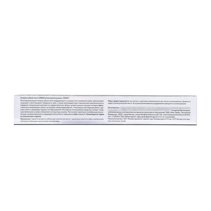 Гелевая зубная паста CONSLY URBAN реминерализующая, 105 г