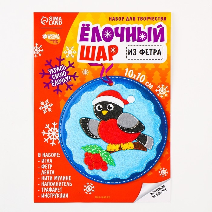 Ёлочный шар своими руками на новый год «Снегирь в шапочке», новогодний набор для творчества