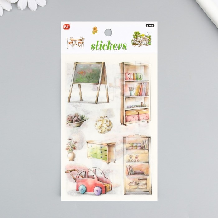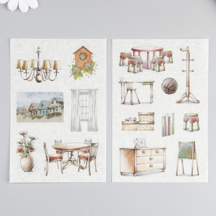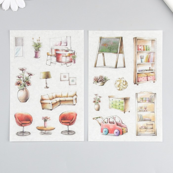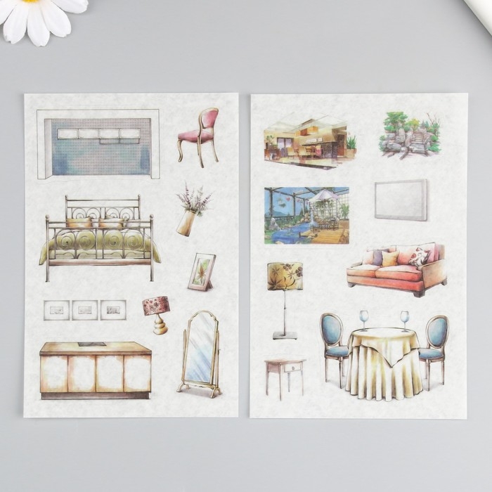 Наклейка бумага "Интерьер загородного дома" набор 6 листов 18,6х10 см