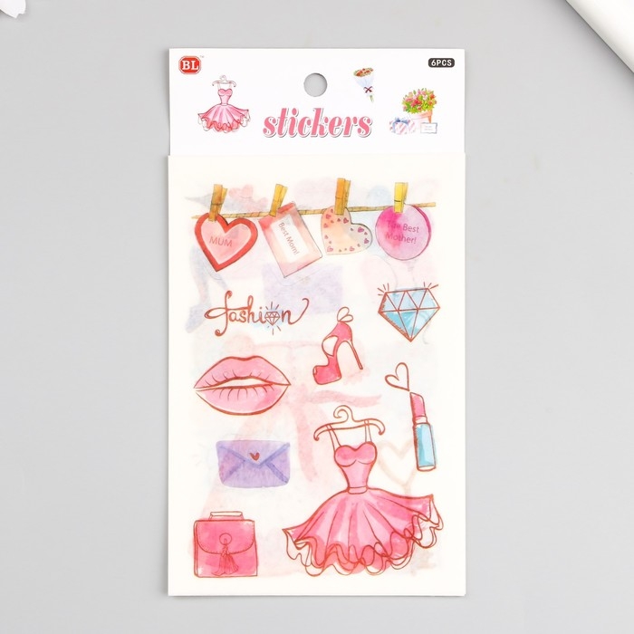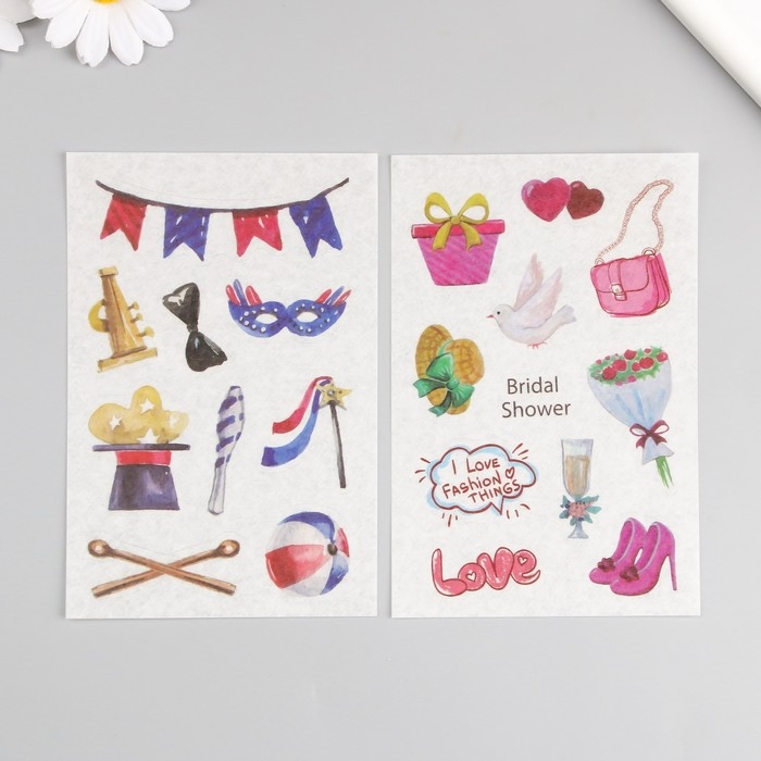 Наклейка бумага "Праздничные атрибуты" набор 6 листов 18,6х10 см
