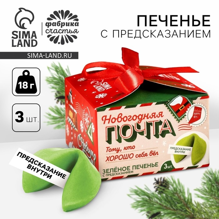 Печенье с предсказаниями «Новогодняя почта», 18 г (3 шт. х 6 г).