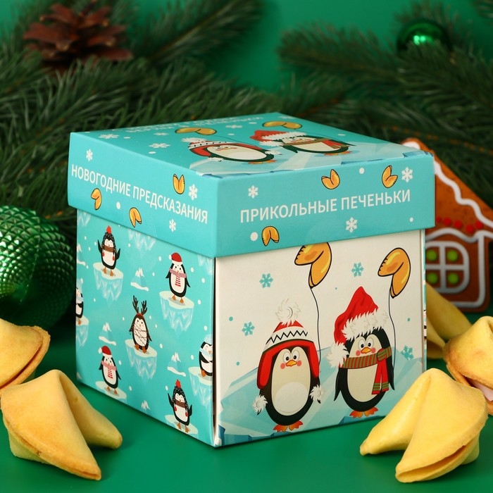Новый год. Печенье песочное с новогодними молодежными предсказаниями "Банда пингвинов", 35 г, 5 шт