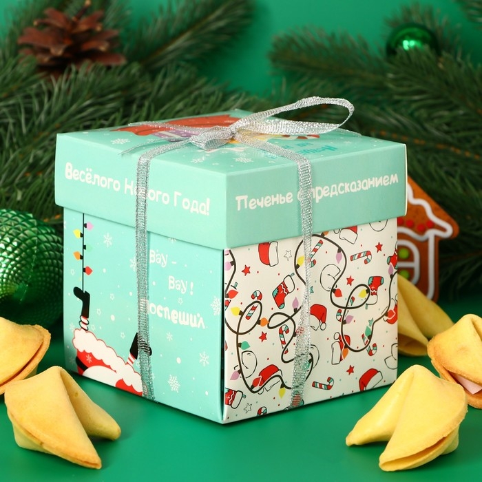 Несмотря на то, что печенье - вкусный десерт, это контейнер предсказания. За это его и любят. 5 штук печенья упакованы в оригинальную коробочку. Внутри каждого печенья - текст, который заставит вас улыбнуться, подумать, помыслить, счесть случайность закономерностью, и даже поверить в чудо!