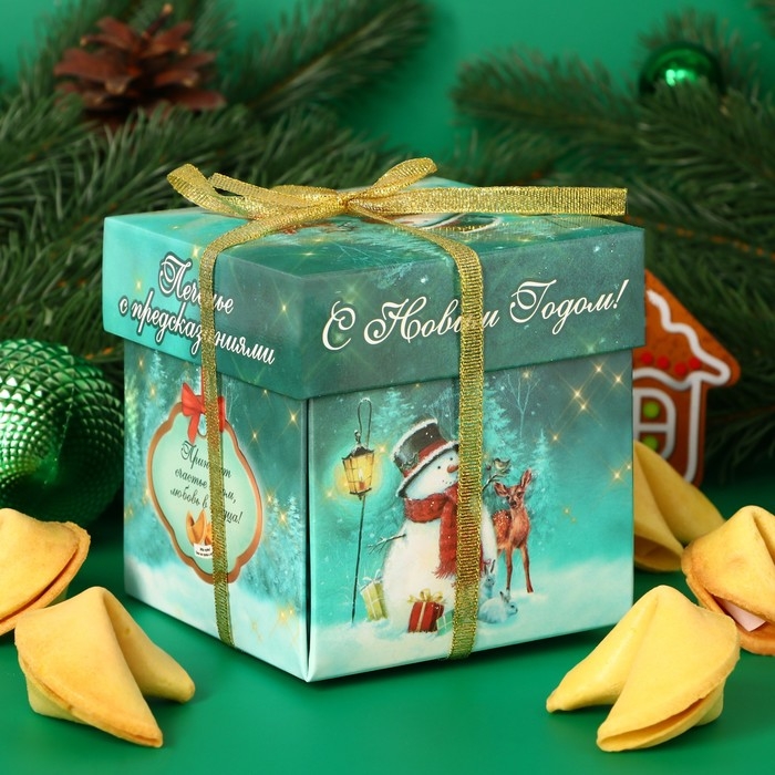 Несмотря на то, что печенье - вкусный десерт, это контейнер предсказания. За это его и любят. 5 штук печенья упакованы в оригинальную коробочку. Внутри каждого печенья - текст, который заставит вас улыбнуться, подумать, помыслить, счесть случайность закономерностью, и даже поверить в чудо!