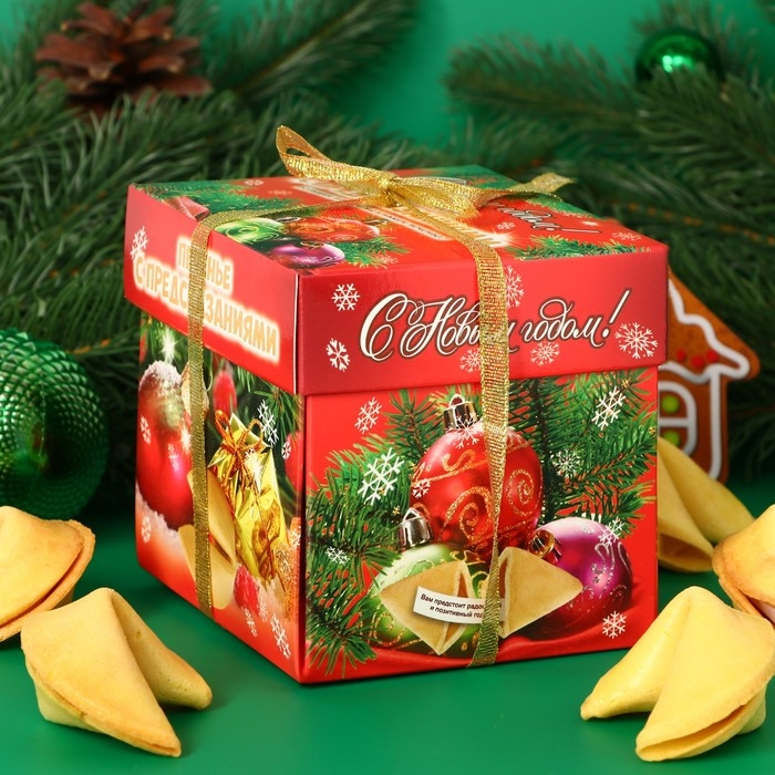 Несмотря на то, что печенье - вкусный десерт, это контейнер предсказания. За это его и любят. 5 штук печенья упакованы в оригинальную коробочку. Внутри каждого печенья - текст, который заставит вас улыбнуться, подумать, помыслить, счесть случайность закономерностью, и даже поверить в чудо!