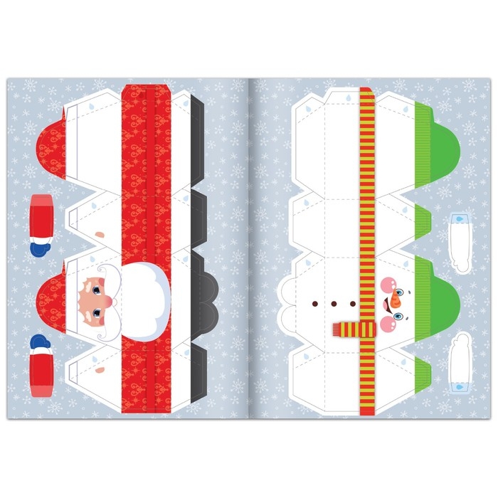 В книге-вырезалке малыша ждут готовые шаблоны фигурок, которые нужно лишь аккуратно вырезать и склеить. Яркие наклейки в комплекте пригодятся, чтобы украсить новогодних персонажей. С готовыми фигурками можно устроить настоящий кукольный театр и разыграть целое представление. Проявляйте фантазию вместе и делайте досуг с малышом весёлым и полезным.