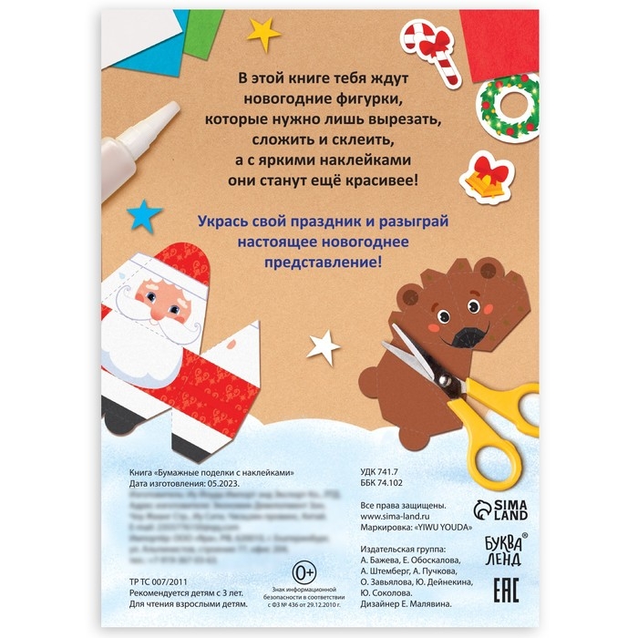 Новый год! Книга-вырезалка с наклейками «Бумажные поделки»