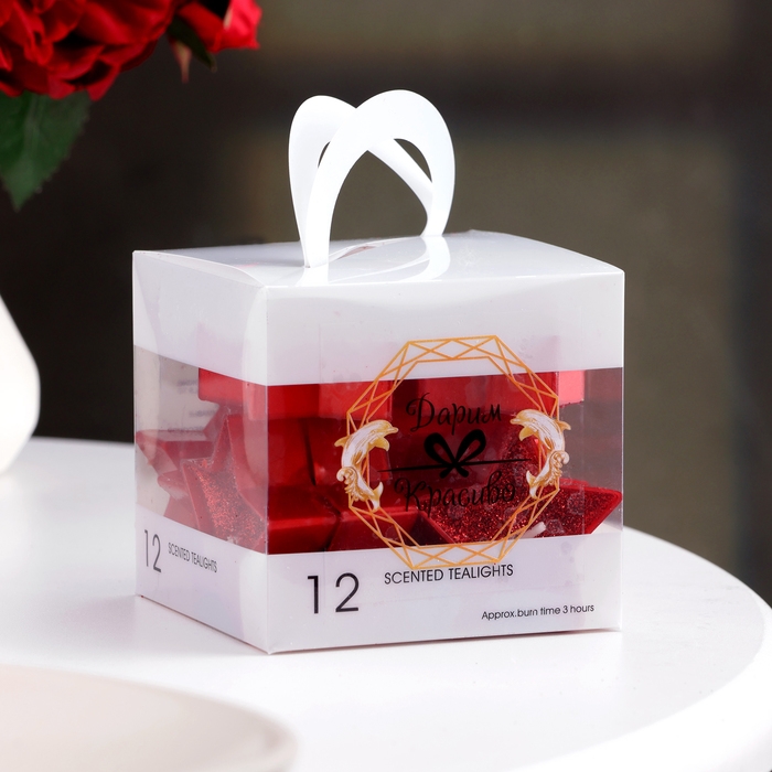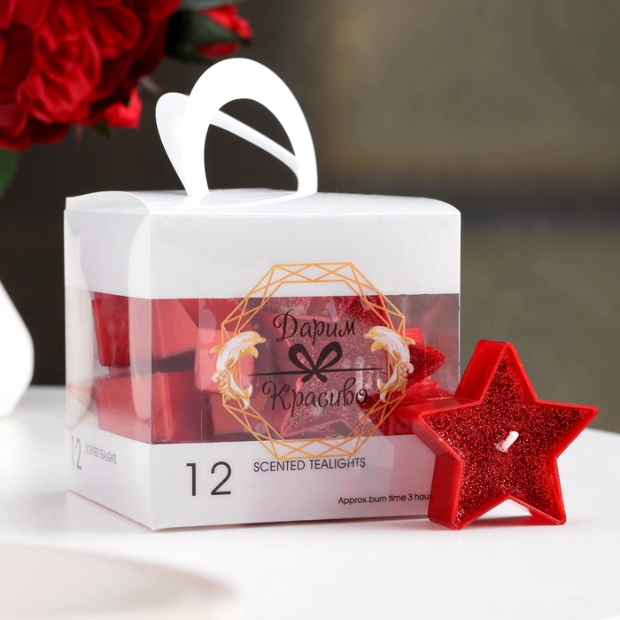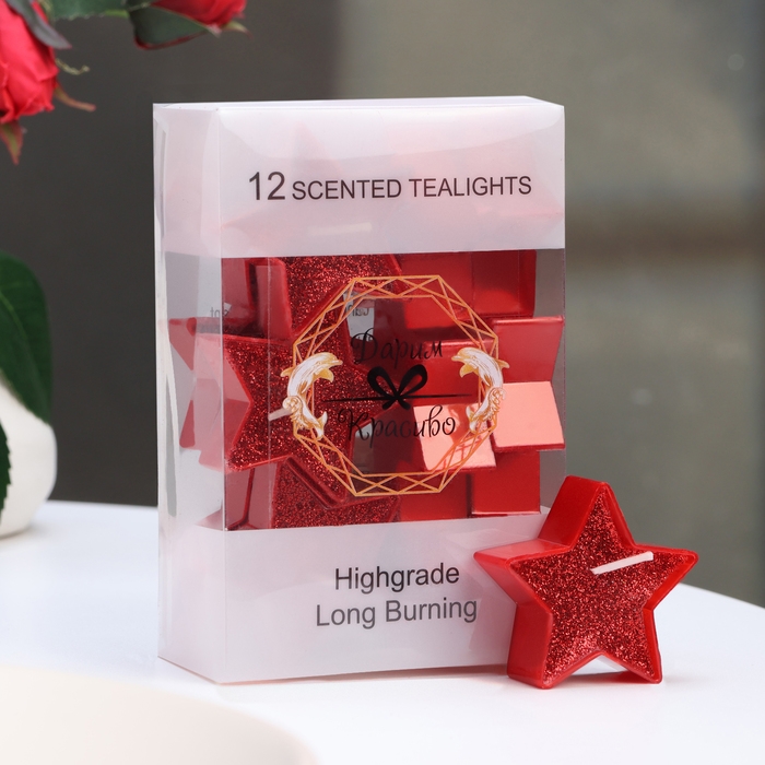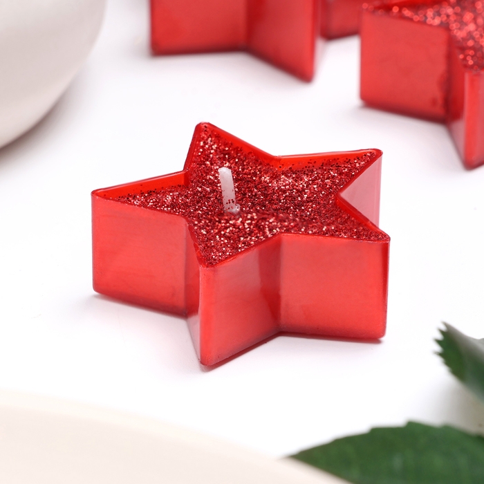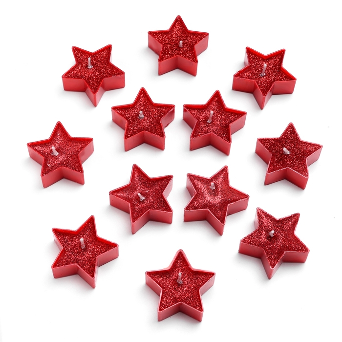 Свеча в гильзе "Звёздочка", набор 12 шт, красная блёстка