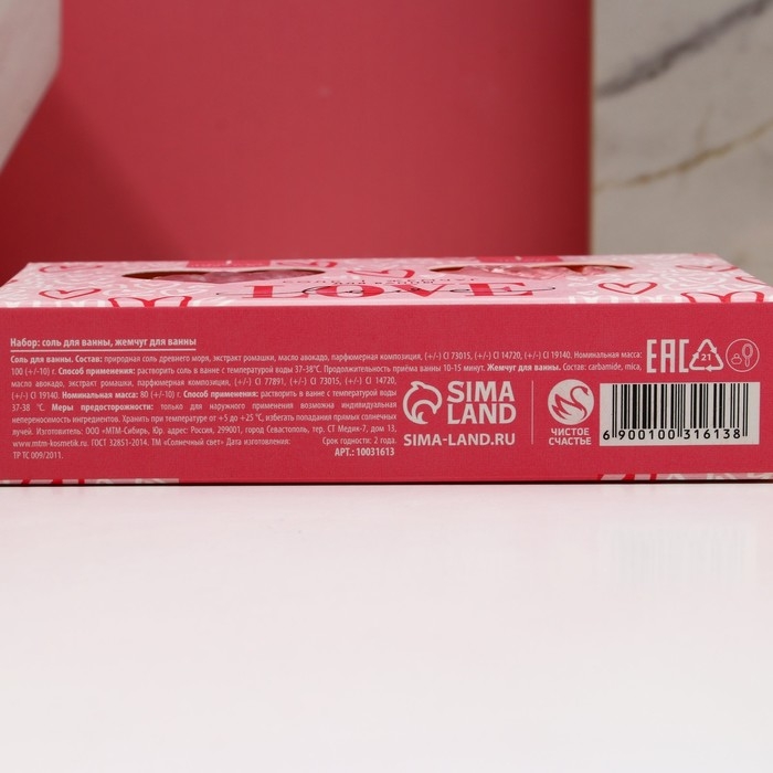 Подарочный набор косметики Love, соль для ванны 100 г и жемчуг для ванны 80 г, ЧИСТОЕ СЧАСТЬЕ