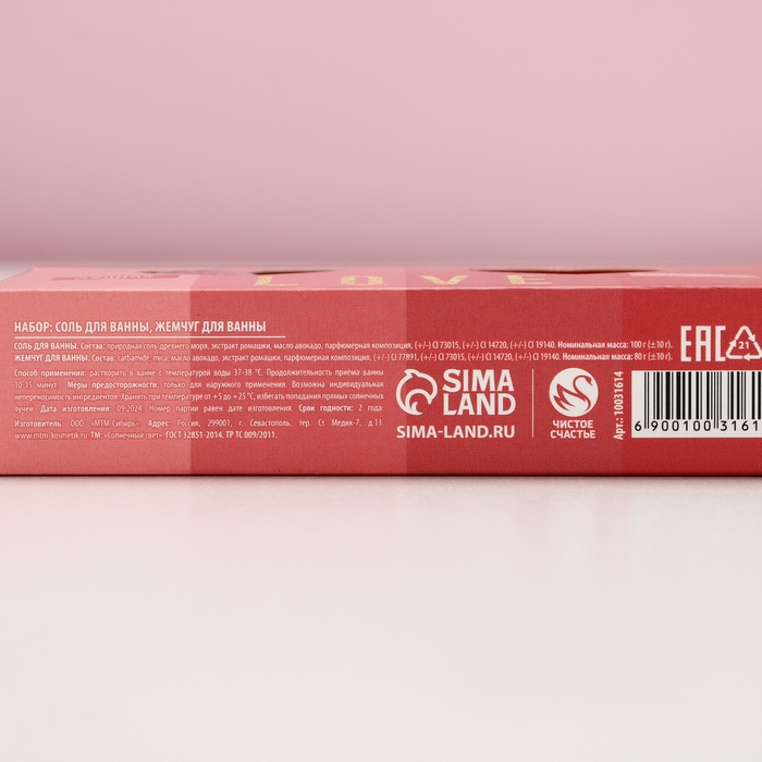 Подарочный набор косметики Love, соль для ванны 100 гр и жемчуг для ванны 80 гр, аромат лесной земляники, ЧИСТОЕ СЧАСТЬЕ