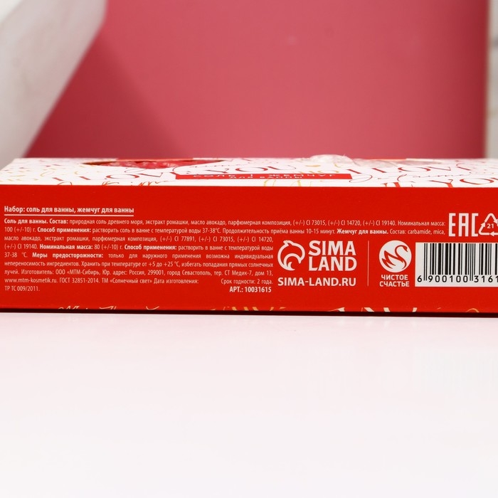 Подарочный набор косметики I love you, соль для ванны 100 гр и жемчуг для ванны 80 г, ЧИСТОЕ СЧАСТЬЕ