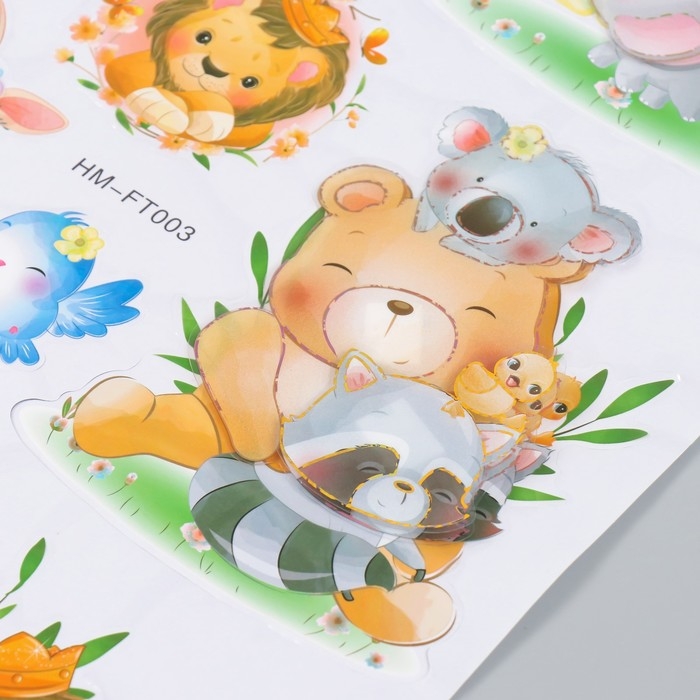 Наклейка пластик многослойная "Зверята и транспорт" 50х35 см