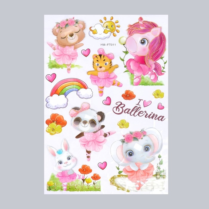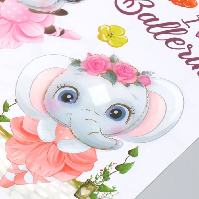 Наклейка пластик многослойная "Зверята балерины" 50х35 см