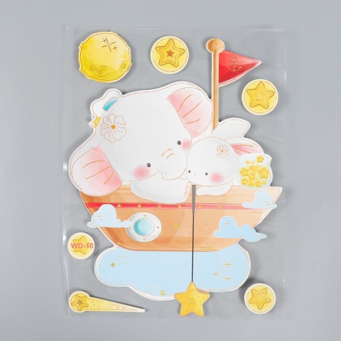 Наклейка EVA интерьерная "Слоник и зайчик на воздушном кораблике" 41х31,5 см