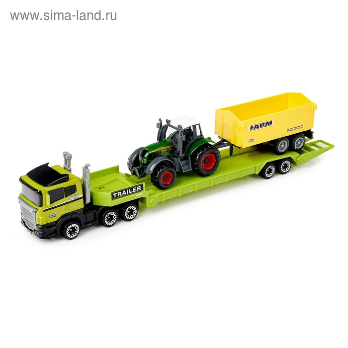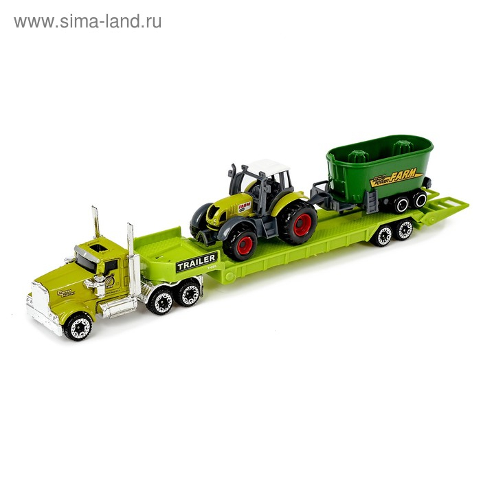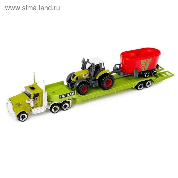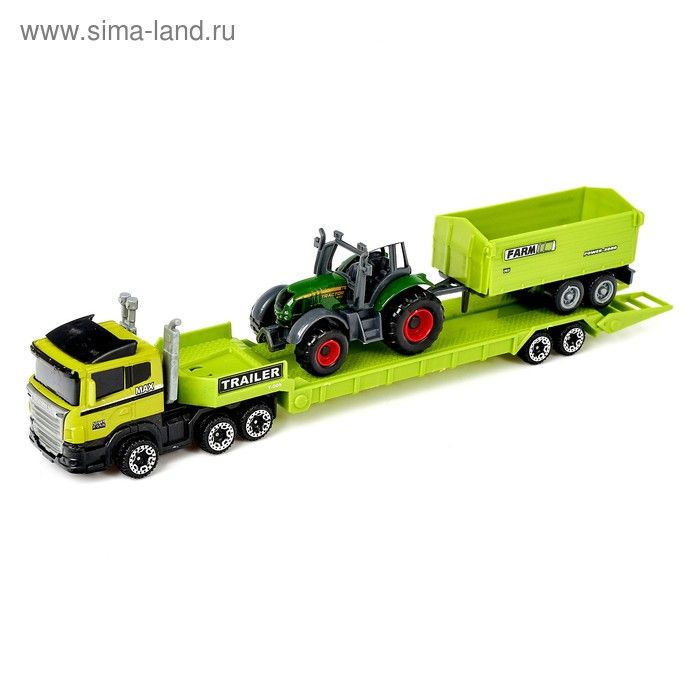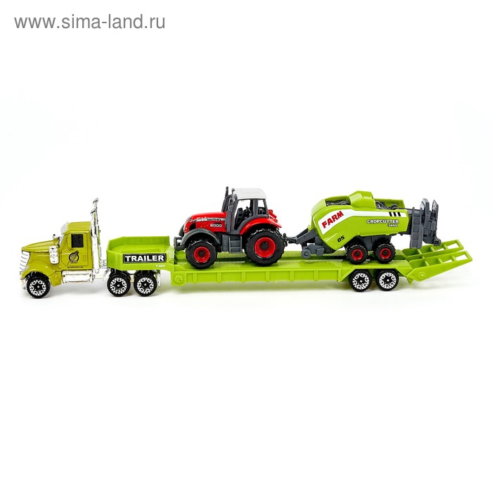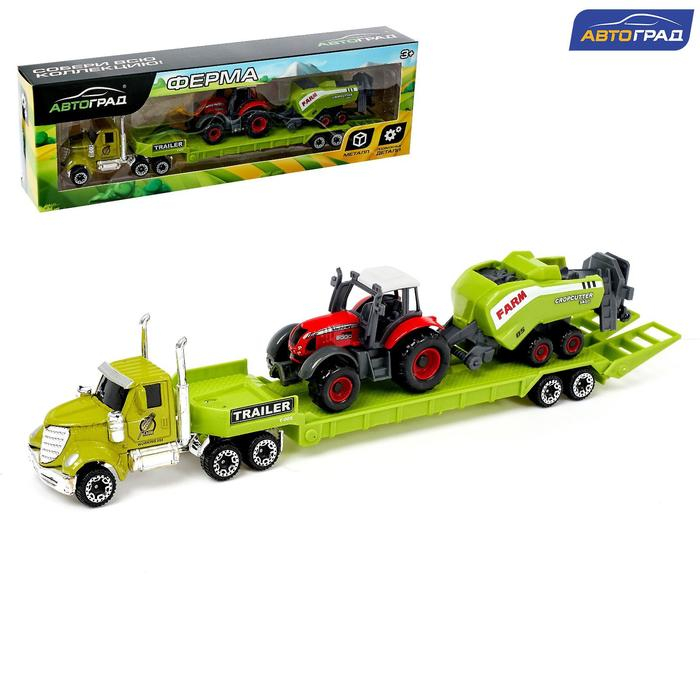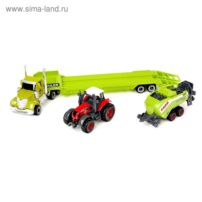 Пора открывать сезон сбора урожая — скорее отправляйте технику в поле! Легко переправить спецтранспорт поможет автовоз. Мальчишке понравится оригинальный дизайн и подвижные элементы техники.