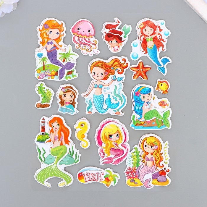 Наклейка пластик, картон 6D с блёстками "Мир русалок" 25,5х17,5 см