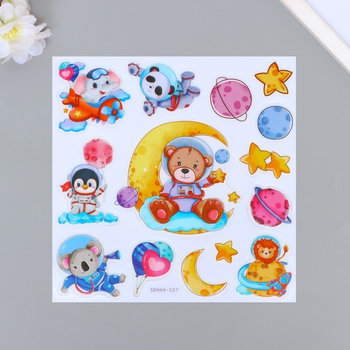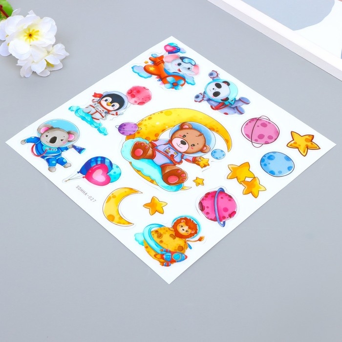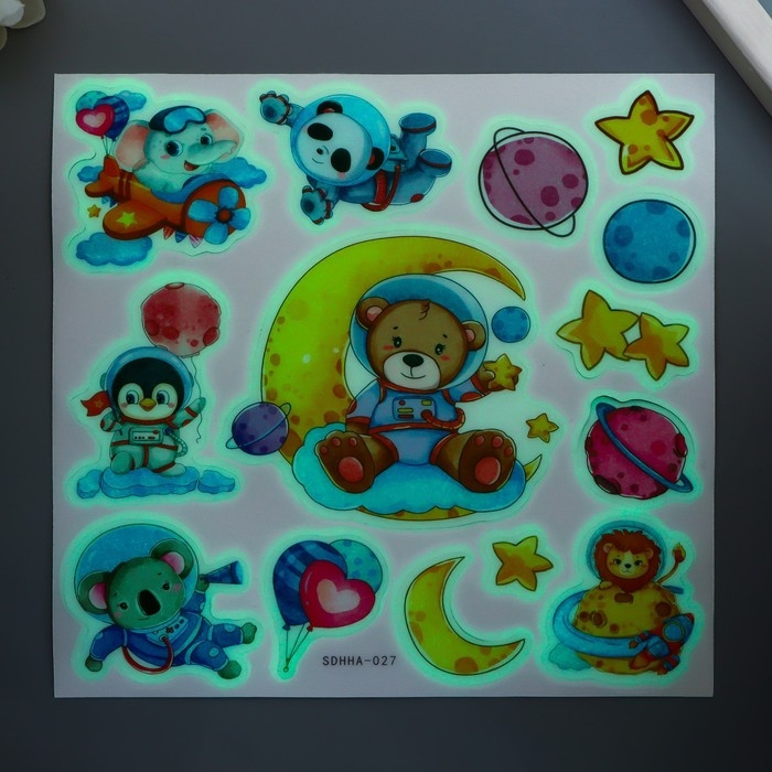 Наклейка пластик интерьерная фосфорная "Космические приключения зверят" 20х20,5 см